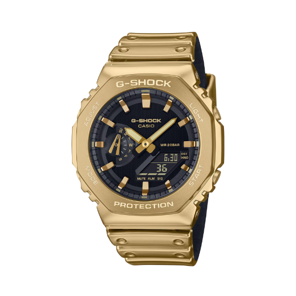 | 【 商品規格 】 ・型 號:GM-2100YM-9A ・動力來源:石英錶(電池) ・錶殼顏色:金色 ・錶殼材質:樹脂/不鏽鋼 ・錶面直徑:49.3 × 44.4 × 11.8 mm ・鏡面材質:礦物玻璃 ・錶帶顏色:金色 ・錶帶材質:樹脂錶帶 ・防水級數:20atm ・保 固 期:機芯一年保固(不包含使用磨損及人為使用因素) ・原廠配件:附原廠錶盒 、說明書、保證卡 ・其 他: *重量 84 g *相容的錶帶尺寸 145 至 215 mm *電池與電池壽命 約略電池壽命:使用 SR726W X 2 為 3 年 *世界時間 世界時間 31 個時區(48 個城市 + 國際標準時間)、日光節約開/關 *碼錶 1/100 秒秒錶 測量範圍:00'00"00~59'59"99(首個 60 分鐘) 1:00'00~23:59'59(60 分鐘後) 測量單位:1/100 秒(首個 60 分鐘) 1 秒(60 分鐘後) 測量功能:經過時間、中途時間、第一名與第二名時間 *計時器 倒數定時器 測量單位:1 秒 倒數範圍:24 小時 倒數開始時間設定範圍:1 秒至 24 小時 (增加以 1 秒鐘、1 分鐘及 1 小時為單位) *鬧鈴/整點報時 5 個每日鬧鈴 整點報時 *照明 雙 LED 燈 錶面 LED 燈 (超亮照明、可選擇照明持續時間(1.5 秒或 3 秒)、殘照機能) 數位畫面 LED 背光 (超亮照明、可選擇照明持續時間(1.5 秒或 3 秒)、殘照機能) 燈光顏色:白色 *行事曆 全自動日曆(至 2099 年) *靜音功能 按鈕操作音開/關 *精準度 準確度:每月 ±15 秒 *其他商品特色 12/24 小時格式 指針移動功能 (指針可移動,讓您清楚看見數位顯示畫面上的內容。) 一般計時:指針:2 根指針(時、分(指針每 20 秒移動一次)) 1 個錶盤(星期) 數位:時、分、秒、下午、月份、日期 數位:時、分、秒、下午、月份、日期 |
