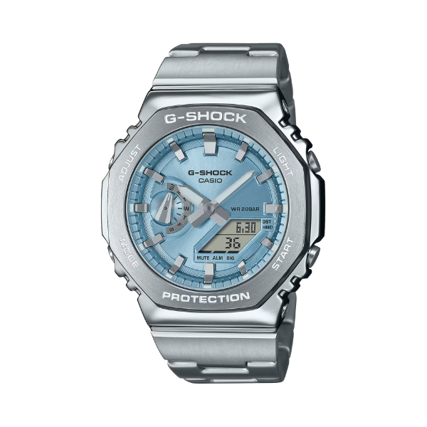 | 【 商品規格 】 ・型 號:GM-2110D-2A ・動力來源:石英錶(電池) ・錶殼顏色:銀色 ・錶殼材質:樹脂/不鏽鋼 ・錶面直徑:49.3 × 44.4 × 11.8 mm ・鏡面材質:礦物玻璃 ・錶帶顏色:銀色 ・錶帶材質:不鏽鋼錶帶 ・防水級數:20atm ・保 固 期:機芯一年保固(不包含使用磨損及人為使用因素) ・原廠配件:附原廠錶盒 、說明書、保證卡 ・其 他: *重量 146 g *相容的錶帶尺寸 150 至 205 mm *電池與電池壽命 約略電池壽命:使用 SR726W X 2 為 3 年 *世界時間 世界時間 31 個時區(48 個城市 + 國際標準時間)、日光節約開/關 *碼錶 1/100 秒秒錶 測量範圍:00'00"00~59'59"99(首個 60 分鐘) 1:00'00~23:59'59(60 分鐘後) 測量單位:1/100 秒(首個 60 分鐘) 1 秒(60 分鐘後) 測量功能:經過時間、中途時間、第一名與第二名時間 *計時器 倒數定時器 測量單位:1 秒 倒數範圍:24 小時 倒數開始時間設定範圍:1 秒至 24 小時 (增加以 1 秒鐘、1 分鐘及 1 小時為單位) *鬧鈴/整點報時 5 個每日鬧鈴 整點報時 *照明 雙 LED 燈 錶面 LED 燈 (超亮照明、可選擇照明持續時間(1.5 秒或 3 秒)、殘照機能) 數位畫面 LED 背光 (超亮照明、可選擇照明持續時間(1.5 秒或 3 秒)、殘照機能) 燈光顏色:白色 *行事曆 全自動日曆(至 2099 年) *靜音功能 按鈕操作音開/關 *精準度 準確度:每月 ±15 秒 *其他商品特色 12/24 小時格式 指針移動功能 (指針可移動,讓您清楚看見數位顯示畫面上的內容。) 一般計時:指針:2 根指針(時、分(指針每 20 秒移動一次)) 1 個錶盤(星期) 數位:時、分、秒、下午、月份、日期 數位:時、分、秒、下午、月份、日期 |